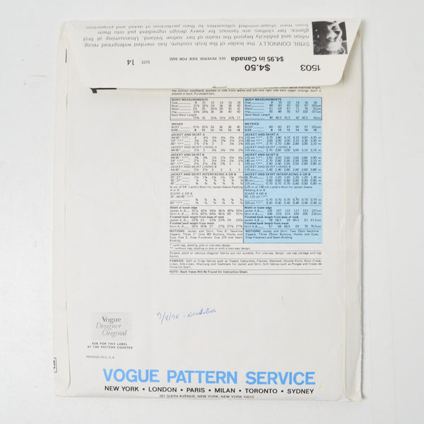Vogue 1503 Sybil Connolly Misses' Jacket, Skirt, and Scarf Sewing Pattern - Size 14
