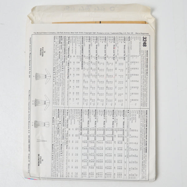 McCall's 3248 Dress + Tie Belt Sewing Pattern - Size 10