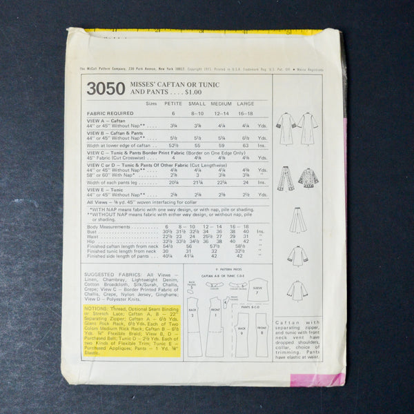 McCall's 3050 Misses' Caftan or Tunic and Pants Sewing Pattern - Size 6