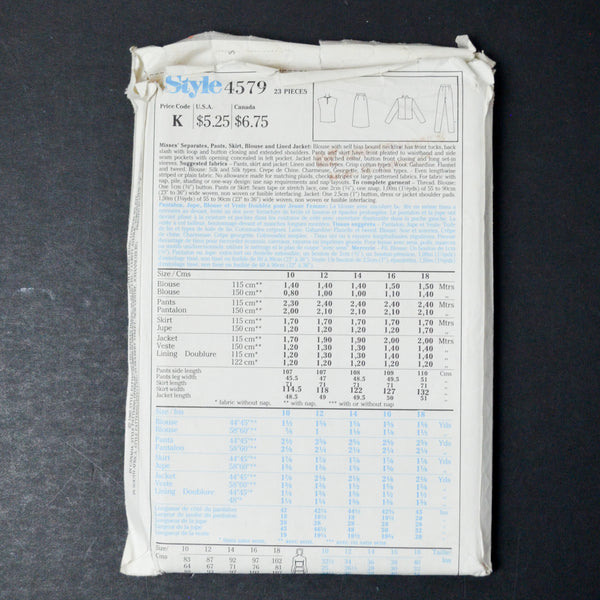 Style 4579 Misses' Separates, Pants, Skirt, Blouse and Lined Jacket Sewing Pattern - Size 12