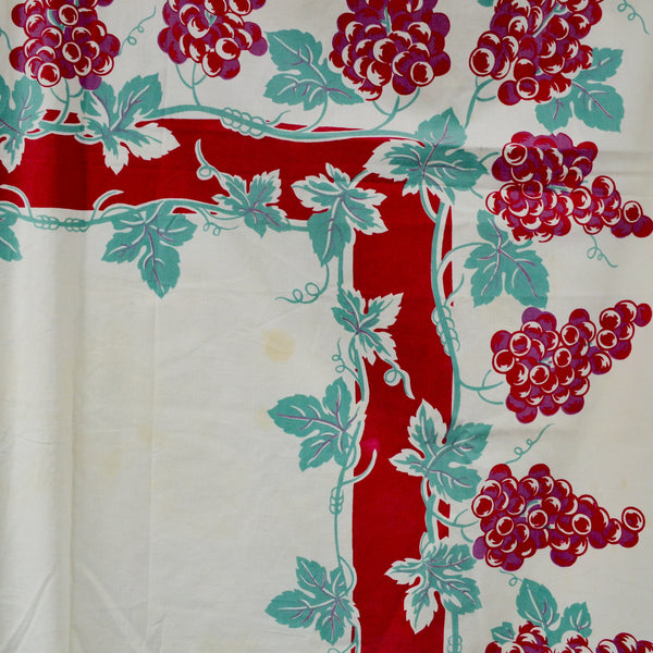 Red + Green Grapevine Vintage Tablecloth - 52" x 70"
