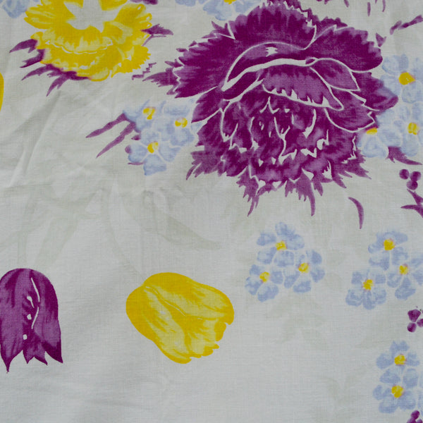 Purple, Yellow + Baby Blue Floral Border Vintage Tablecloth - 54" x 62"