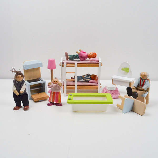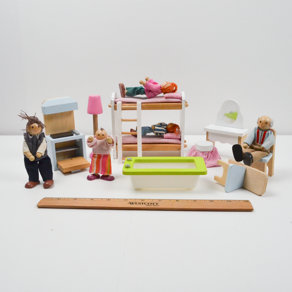 Miniature Wooden Doll Family + Furniture Bundle