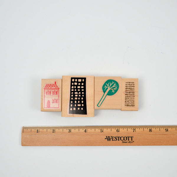 House + City Building Stamps - Set of 4