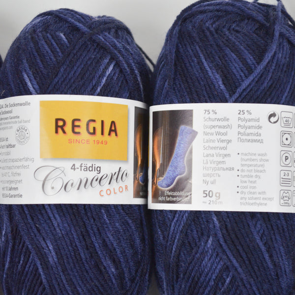 Navy Blue Variegated Regia Concerto Color Superwash + Polyamide Yarn - 4 Skeins