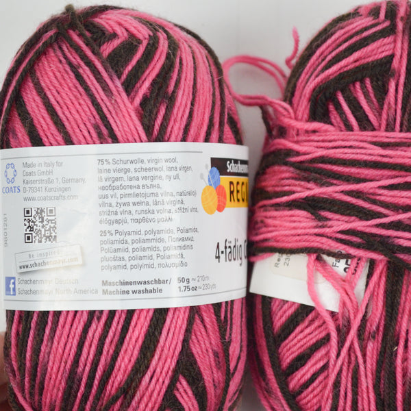 Pink + Brown Variegated Regia Virgin Wool + Polyamide Yarn - 2 Skeins