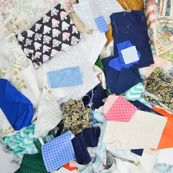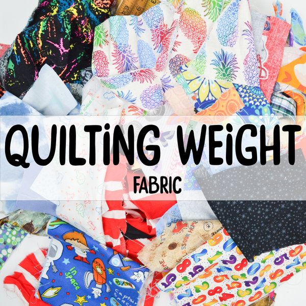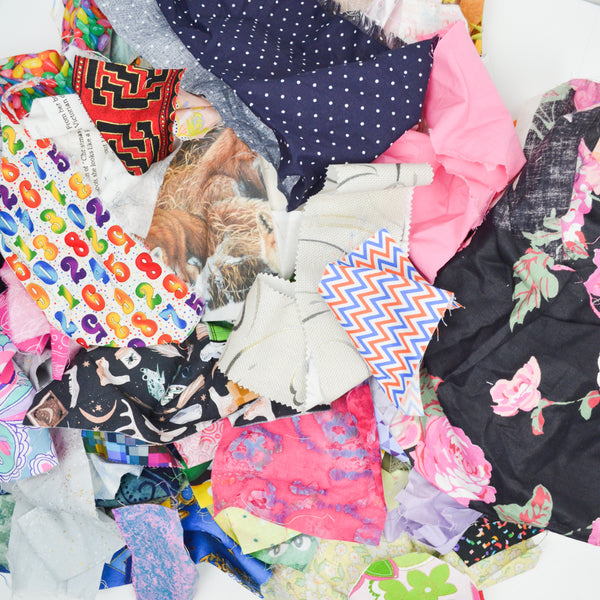One Mystery Quilting Weight Fabric Scrap Bag from our Supply Pantry. Filled with approximately one pound of Quilting Weight Fabric Scraps.