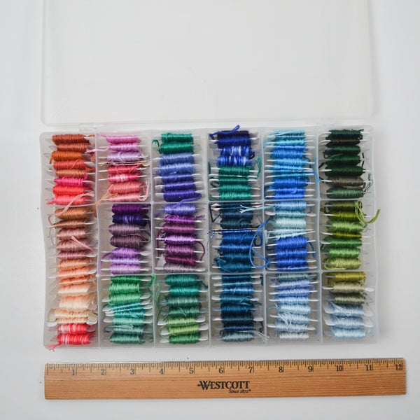 Green, Blue + Pink Embroidery Floss in Organizing Case