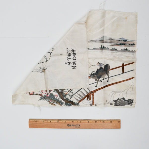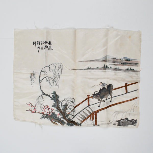 Detailed Musk Ox + Boy Embroidered Silk Panel - 13" x 16"