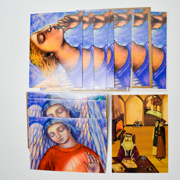 5 of the cards have envelopes, 6 do not. All are blank inside